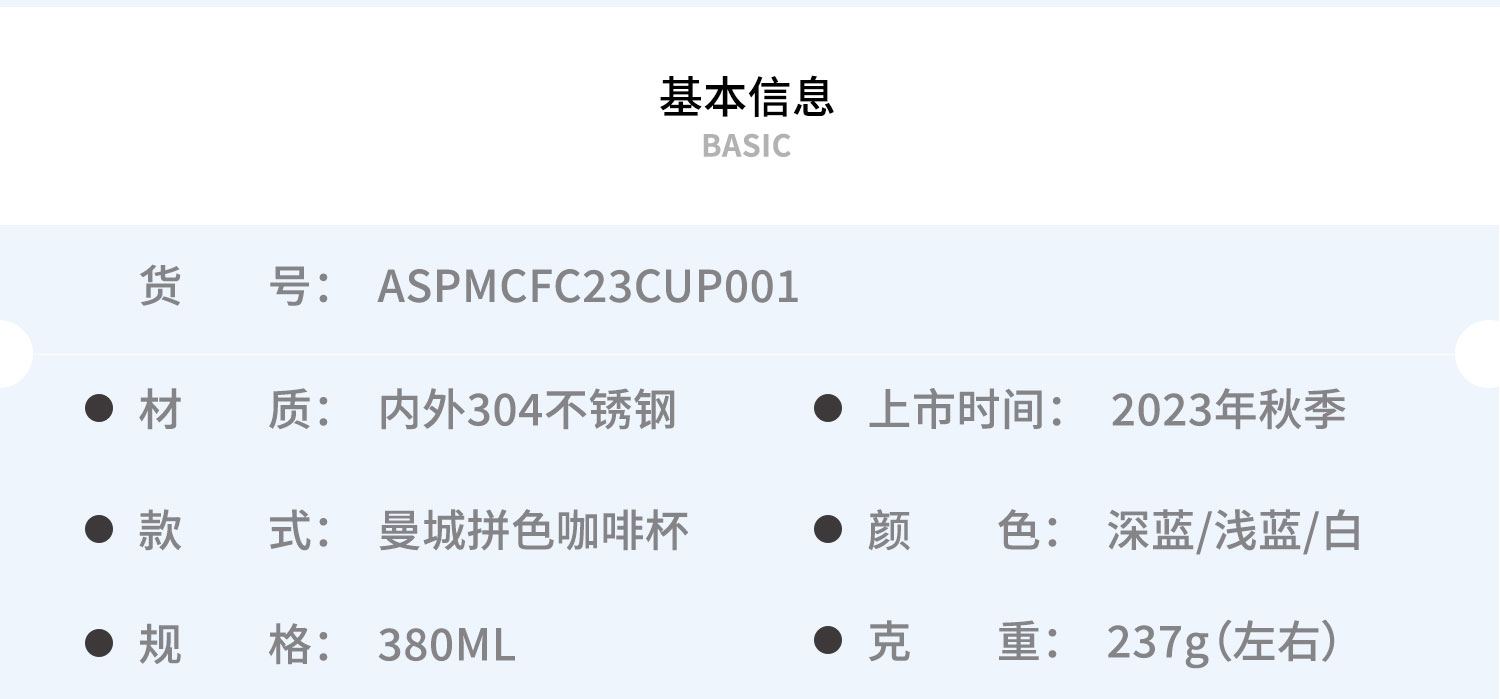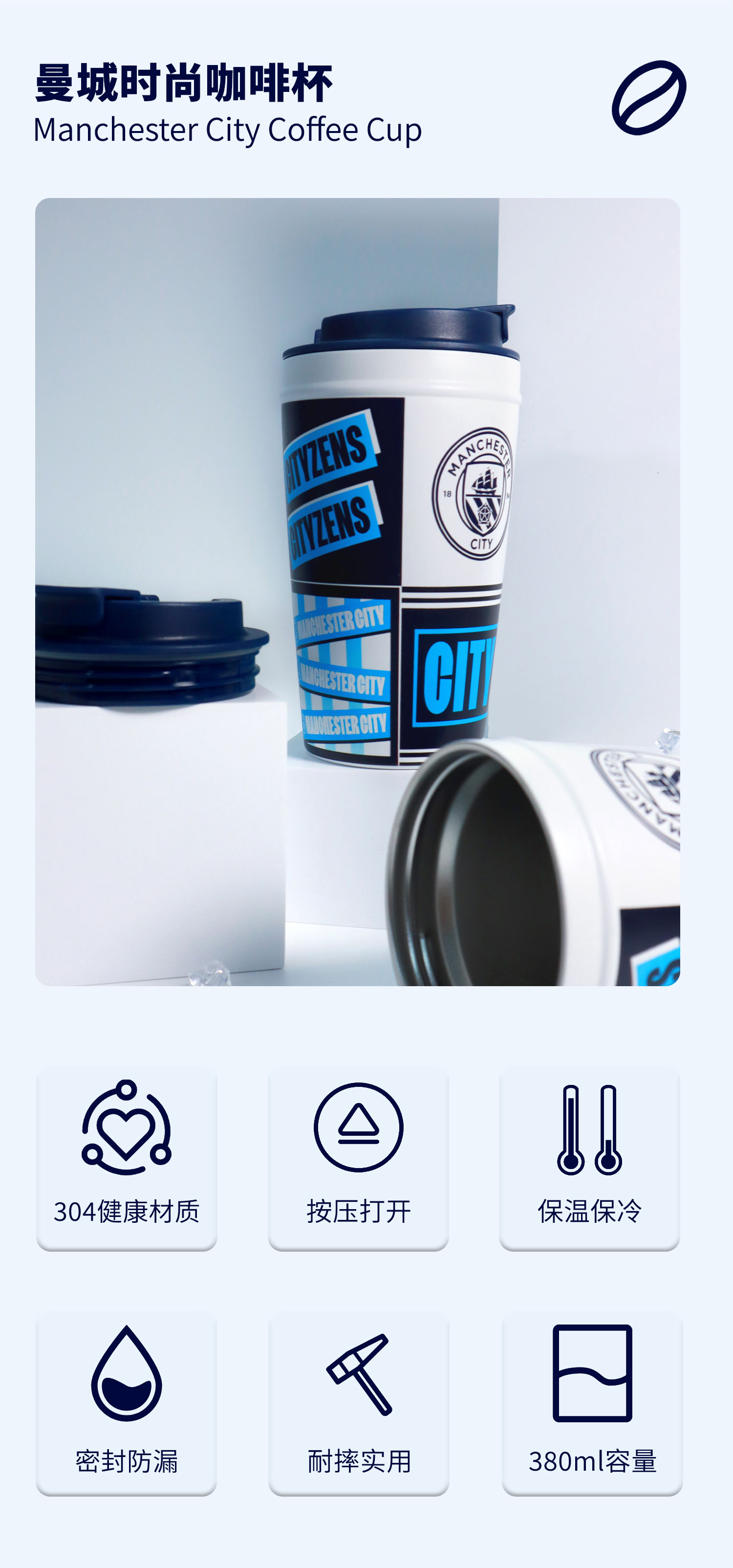 曼城俱乐部 | 咖啡杯便携保温杯足球迷杯子 380ml