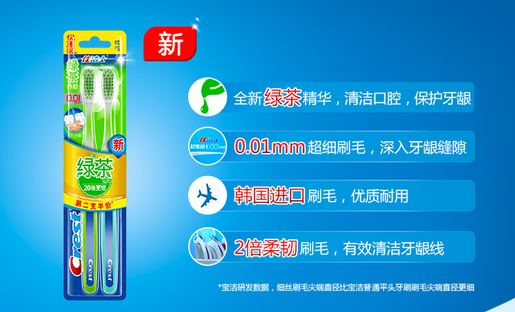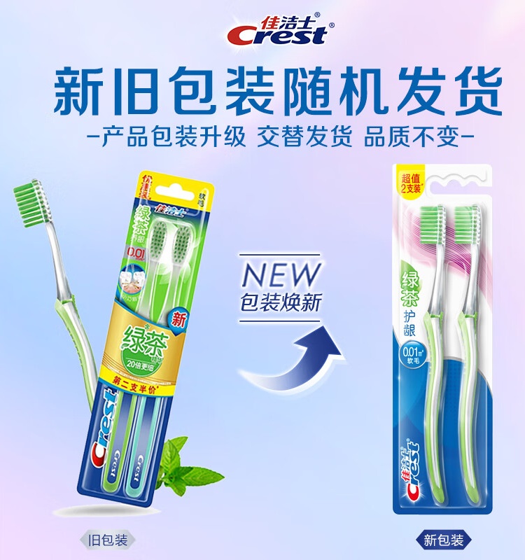 佳洁士 超细柔韧绿茶养龈牙刷+佳洁士3D炫白冰极薄荷牙膏 牙刷2支+340g