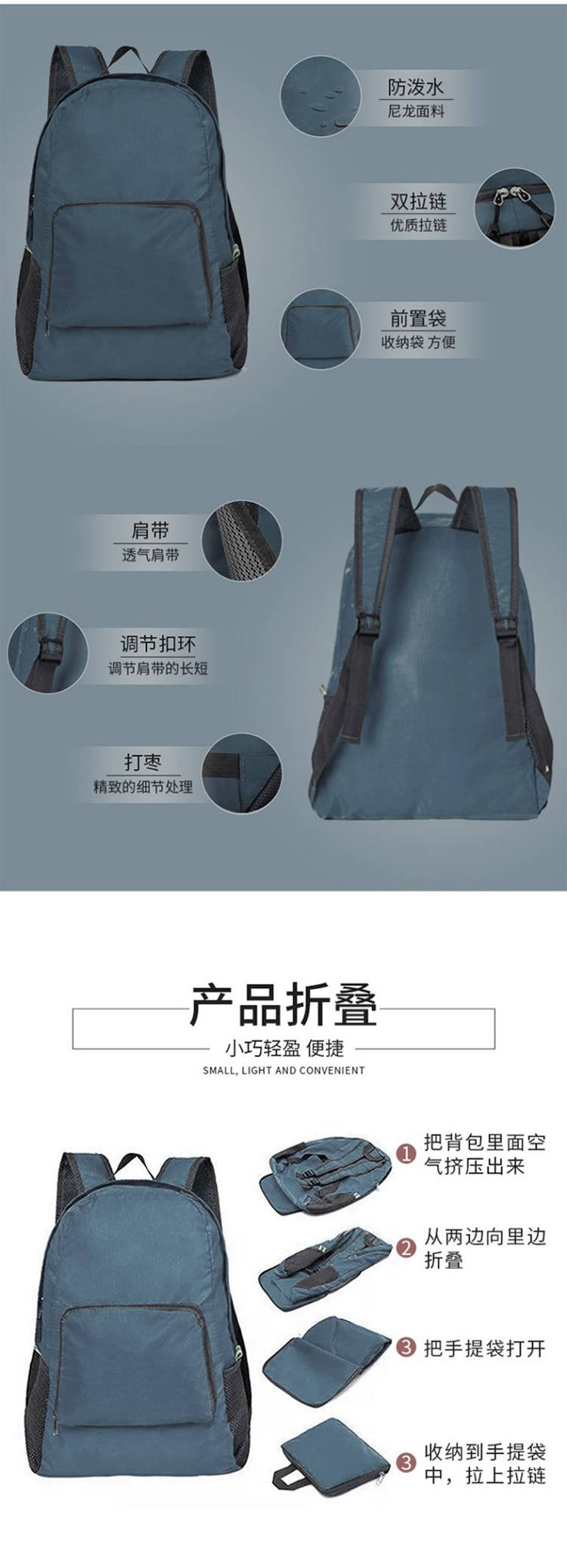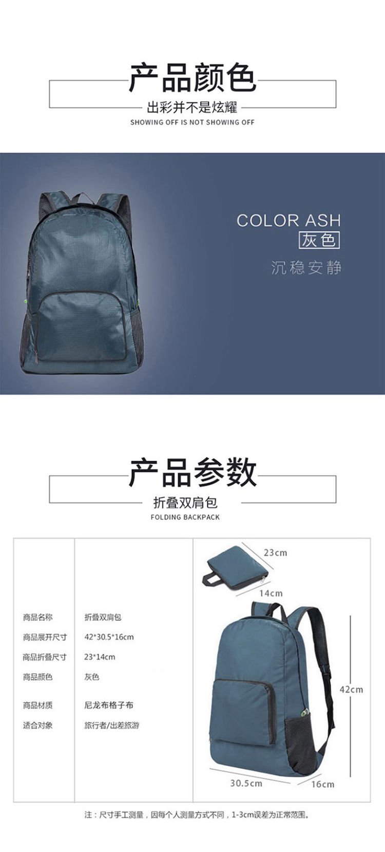 WRC 户外防水速干折叠双肩包 42*30.5*16cm